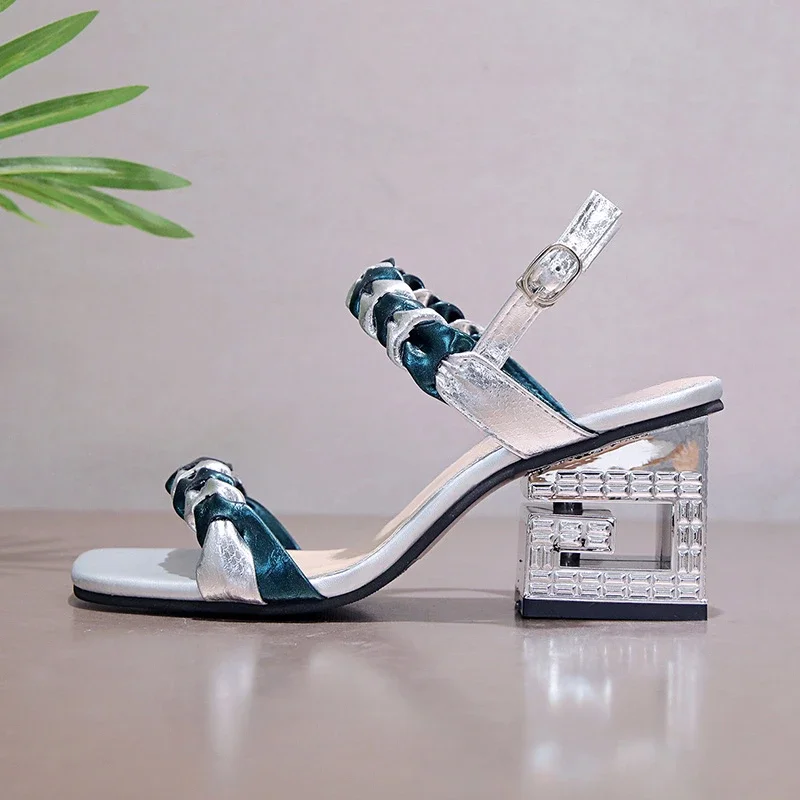 Versatile women's block heels with a stylish buckle, perfect for summer. These open-toe sandals offer comfort and elegance in a trendy color match design.